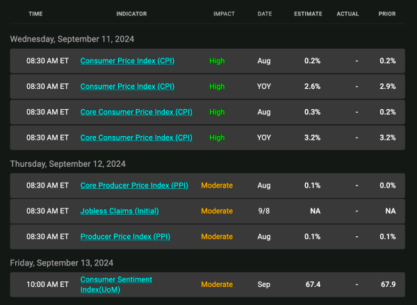 Next week is the Blackout or Quiet Period for the Fed. This means there are no speeches or comments on monetary policy. That is a good thing. We do have the Consumer Price Index (CPI) inflation reading which has been the biggest market mover for interest rates over the past couple of years. Markets are expecting CPI to come in at 2.6% year-over-year, the lowest since March 2021. We are also going to have another round of Treasury auctions that can move rates sharply.