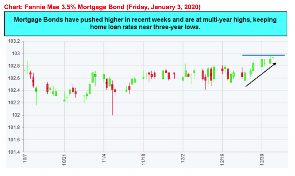 The new year and new decade started, and good news, some things don’t change. Stocks picked up right where they left off in 2019 by touching all-time highs. And Bonds, which also performed well in 2019, continue to hover near three-year highs, keeping home loan rates near 3-year lows.