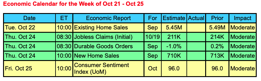 - Existing Home Sales will be released on Monday, Weekly Initial Jobless Claims and Durable Orders on Thursday, and Consumer Sentiment on Friday.