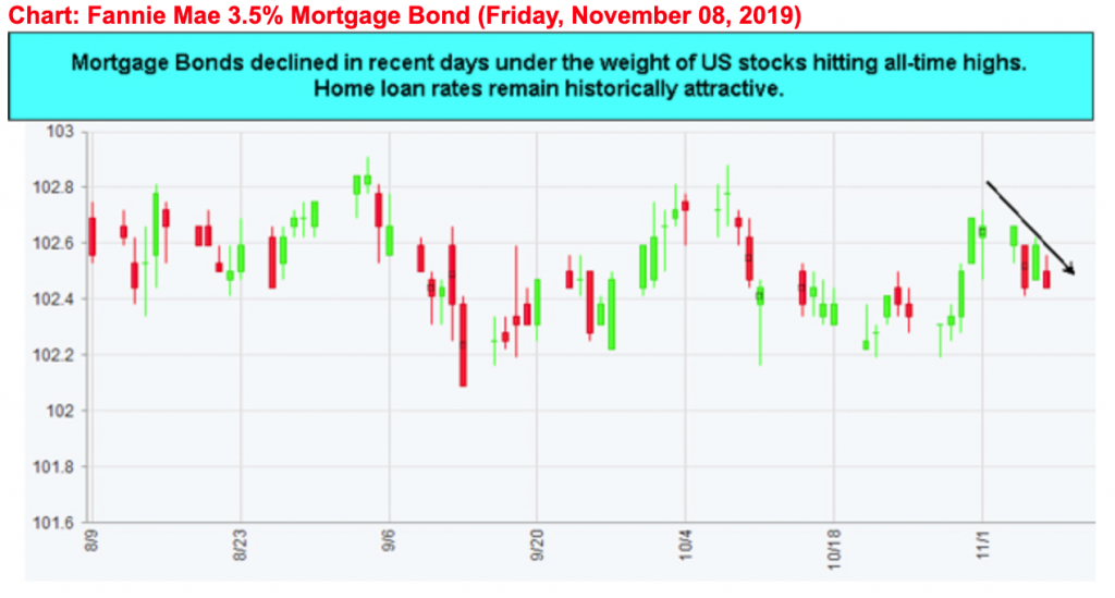 However, come Thursday, word that both the U.S. and China would roll back tariffs as a deal gets put together was very good news which pushed Stocks to all-time highs at the expense of Bonds and home loan rates.