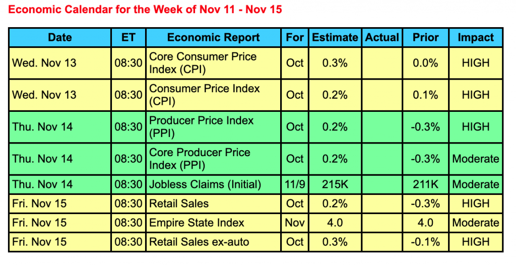 The inflation reading Consumer Price Index will be released on Wednesday followed by the Producer Price Index on Thursday.