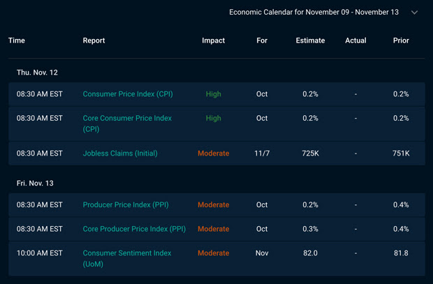 Economic Calendar for the Week of November 9 – November 13
