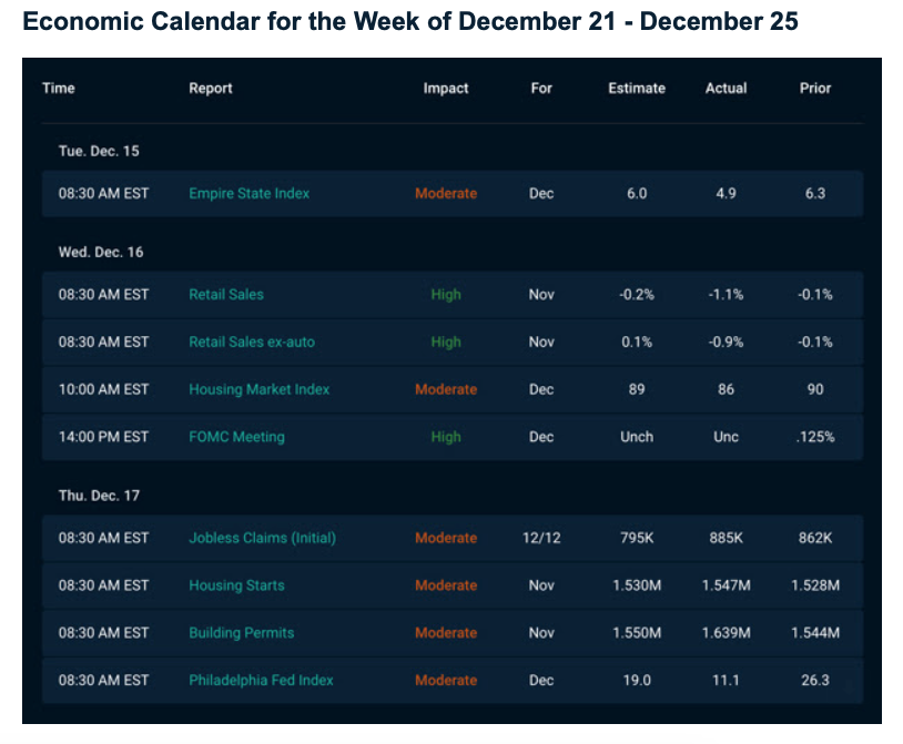The financial markets may continue to bask in the glow of the Fed’s seemingly never-ending monetary support. As of this writing, we still do not have a fiscal stimulus bill out of Congress, but we expect and hope to see a plan before Christmas. There is an enormous amount of political pressure to get a stimulus bill passed. The Bond market has a holiday-shortened 1:00 p.m. ET close on Thursday, Dec. 24 and full market closure on Christmas, Friday.
