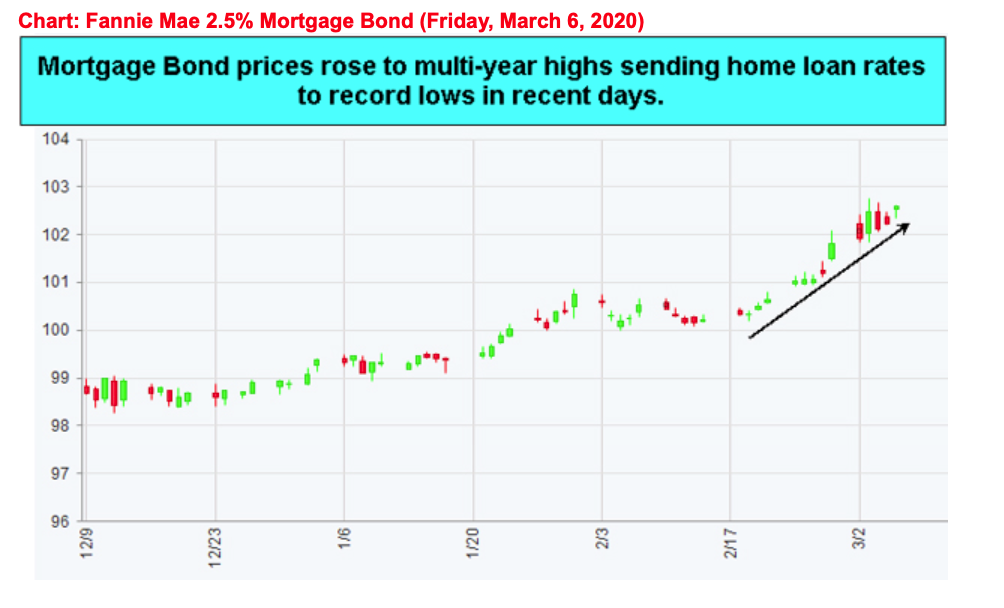 - The coronavirus outbreak is improving in China and the outbreak numbers here in the U.S. have not exploded, as of yet. This is good news, and should it continue, it is unlikely we will see much lower home loan rates in the near future.