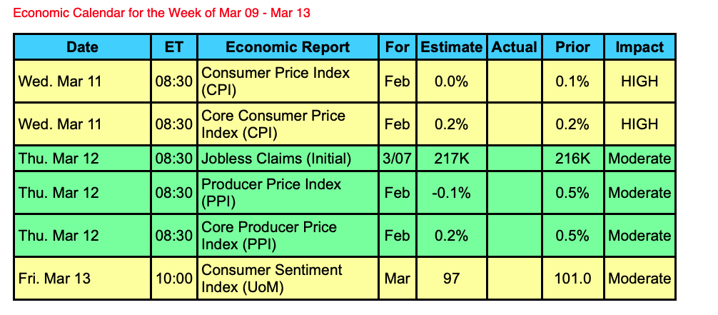 - Inflation data will be seen from Wednesday’s Consumer Price Index and Thursday’s Producer Price Index.