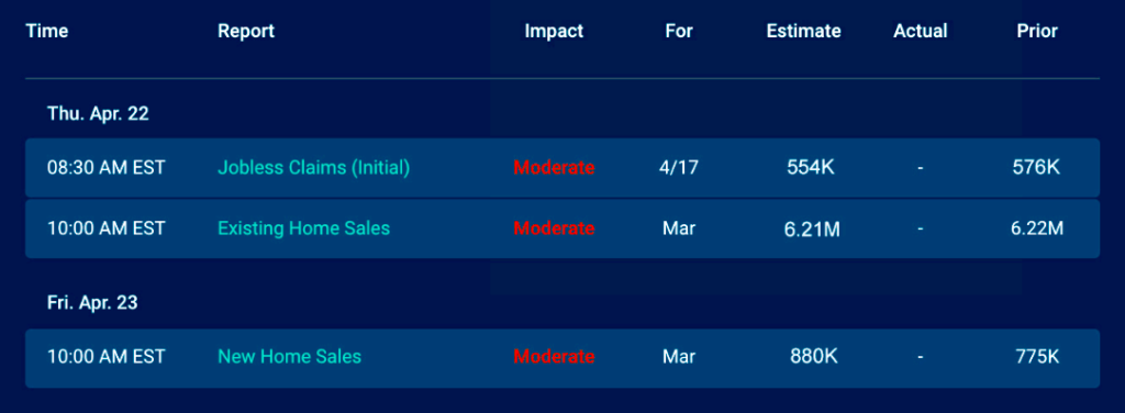 Economic Calendar for the Week of April 19 – 23