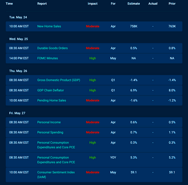 Next week’s economic calendar brings the Fed’s favored gauge of inflation, the Core Personal Consumption Expenditure (PCE) Index. This will be a very important reading as it is the last PCE report before the Fed’s next meeting on June 15th, where it is widely expected they raise the Fed Fund Rate by .50% to a range of 1.25 to 1.50%. Speaking of the Fed, we will see the Fed Minutes from the May 4th Fed Meeting. History has shown the Fed Minutes could be a market mover.
