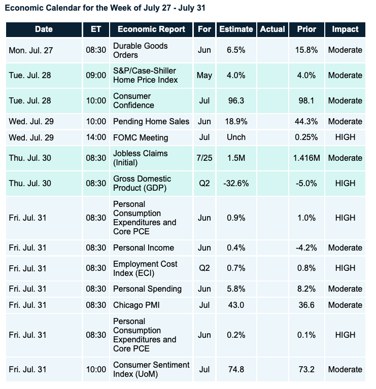 Economic Calendar for the Week of July 27 – July 31