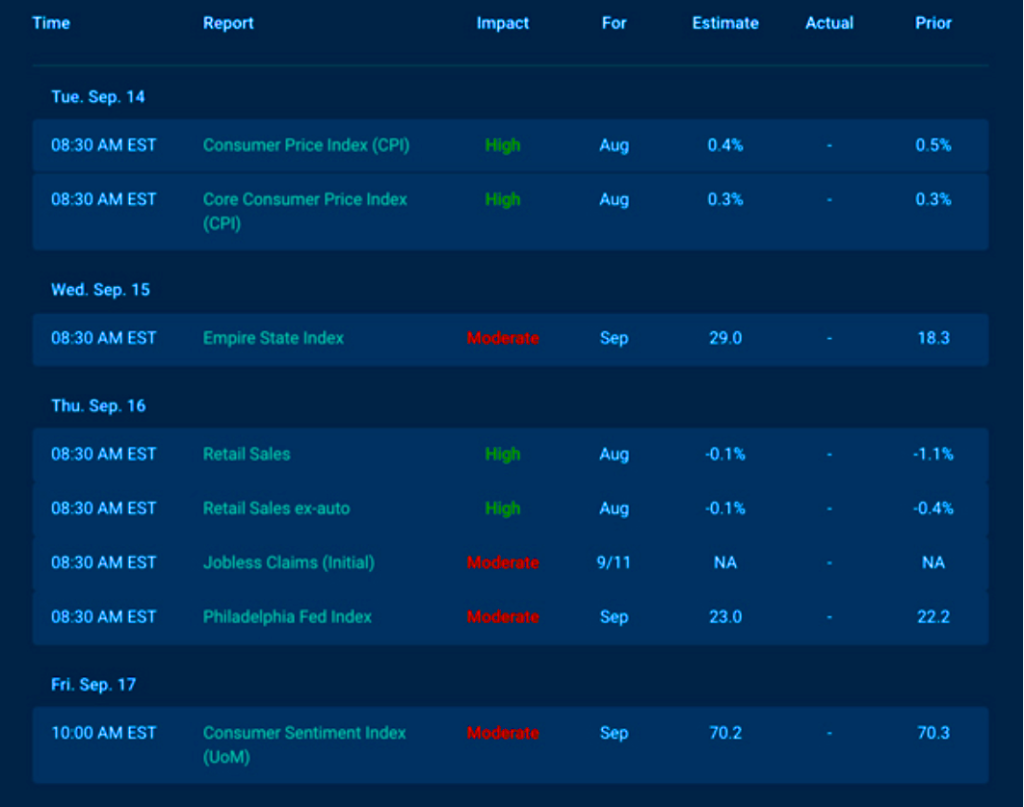 Economic Calendar for the Week of September 13 – 17