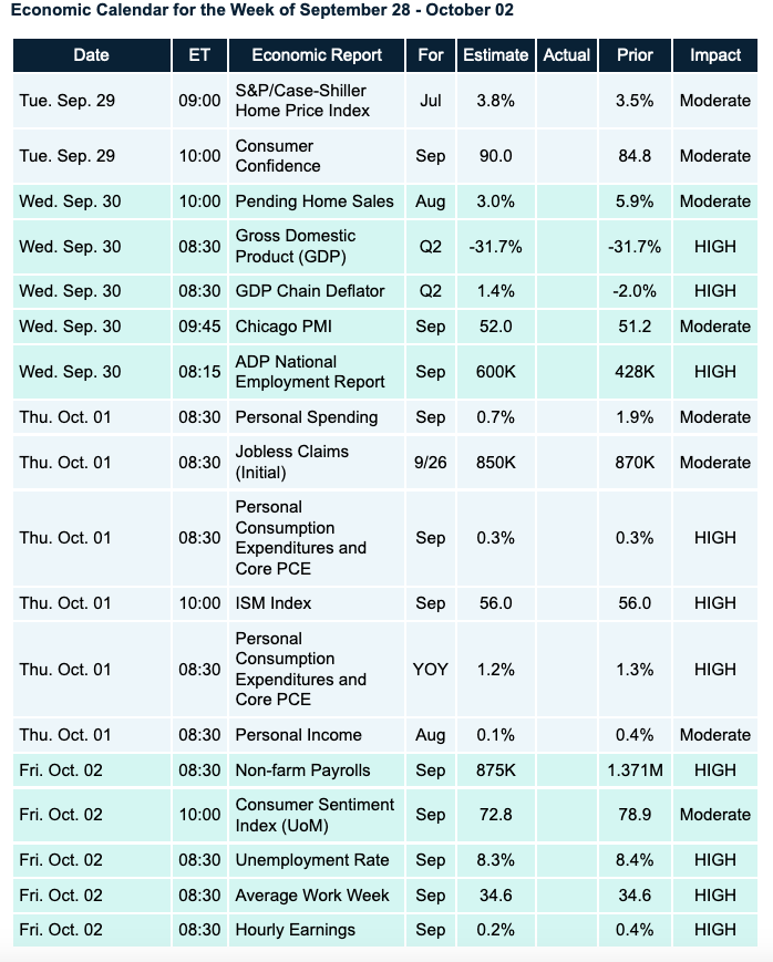 Economic Calendar for the Week of September 28 – October 2