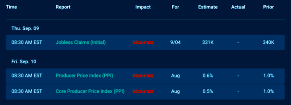The economic calendar is extremely light for the holiday shortened week as the markets look to the September 21-22 FOMC meeting in the coming weeks.